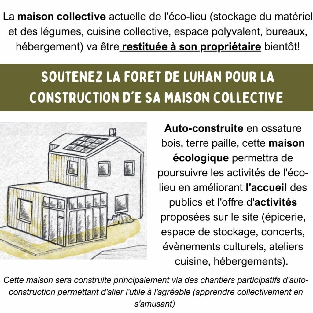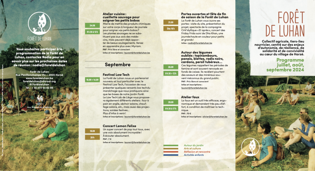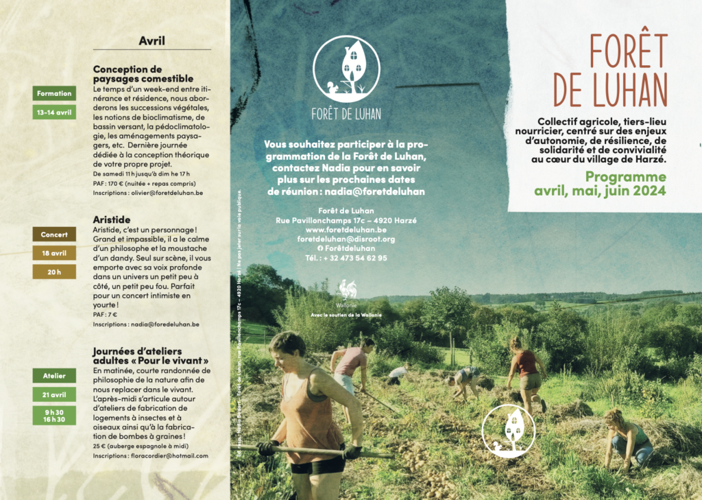 La Forêt de Luhan est un collectif agricole installé à Harzé depuis 5 ans: production agricole en circuits-courts, ateliers de savoir-faire et réflexifs, évènements socio-culturels, accueil de groupes etc.
